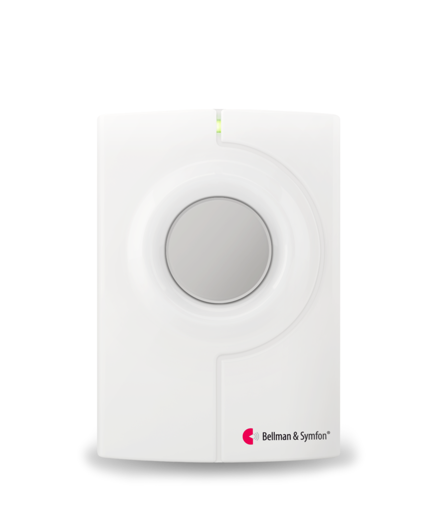 Dieser Sender ist Teil des Visit Smart Home Systems, das Ihnen hilft, Ihre Wohnung im Auge zu behalten. Dieser Sender funktioniert wie eine Funktürklingel. Er kann aber auch als Personenruf verwendet werden, um einen Angehörigen oder Pflegepersonal zu benachrichtigen, dass Sie Unterstützung benötigen.
